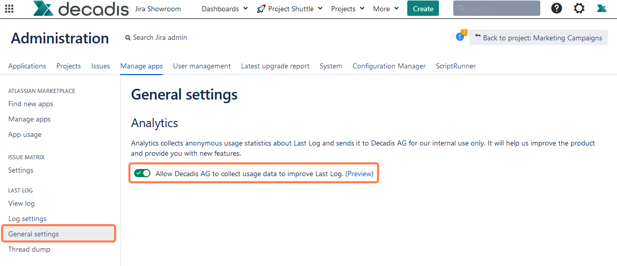 By clicking the Preview link next to the toggle to turn the app metrics on and off, you can easily see what data we collect in detail.