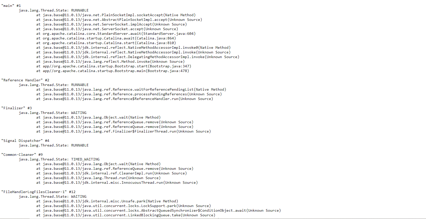 You will be taken directly to the thread dump which gets opened as a plaintext file in a separate tab.