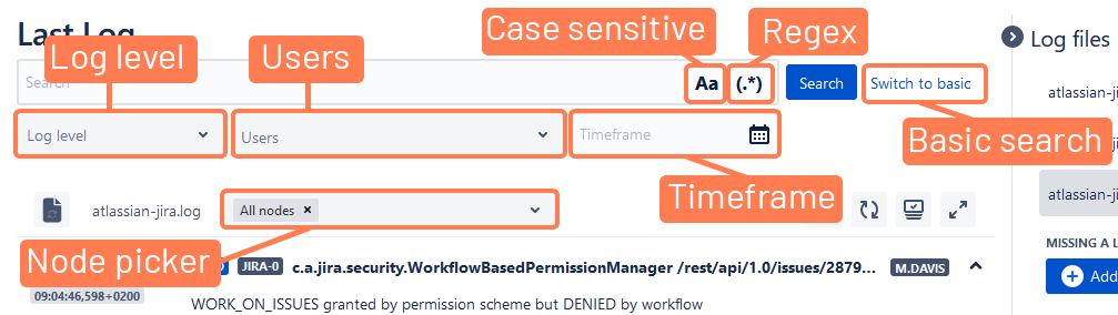 Select which log file you want to investigate in the main interface out of all the available log files in your Jira instance.