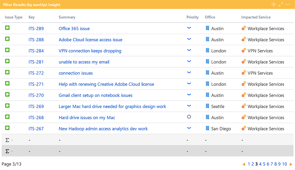 Once Insight custom fields are configured, they can be added to our Gadgets to display all relevant data or to be used for grouping.