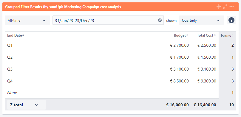 Adjust the time period and the shown aggregation level of the data directly in the gadget!
